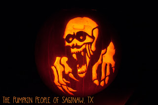 Nick began his hydration ritual and started giving the earlier carved pumpkins a dip in the spa. We began to notice that a couple of them were becoming questionable already, and by the end of day 3 we had 2 pumpkins that we had to go ahead and trash. This is why it's so important that we get that first photo of it as soon as they're carved - sometimes, they don't make it to Halloween night, which is unfortunate.